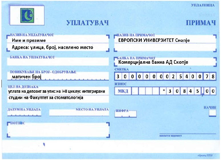 При Аплицирањето/уписот плаќате депозит од 300€ , односно 500€ на Факултетот за стоматологија.