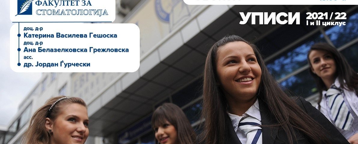 Ве известуваме дека на ден 08.04.2021 (четврток) со почеток во 13:00 часот ќе се одржи информативна online сесија на која можете да добиете одговори во врска со сите прашања кои се однесуваат на уписот и студирањето на Факултетот за стоматологија – интегрирани академски 5-год. студии по Стоматологија од I и II циклус, како и стручни студии за Забни техничари.
