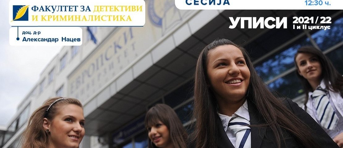 Ве известуваме дека на ден 15.04.2021 (четврток) со почеток во 12:30 часот ќе се одржи информативна online сесија на која можете да добиете одговори во врска со сите прашања кои се однесуваат на уписот и студирањето на Факултетот за детективи и криминалистика од I циклус и II циклус. На вашите прашања ќе одговара деканот доц. д-р Александар Нацев.