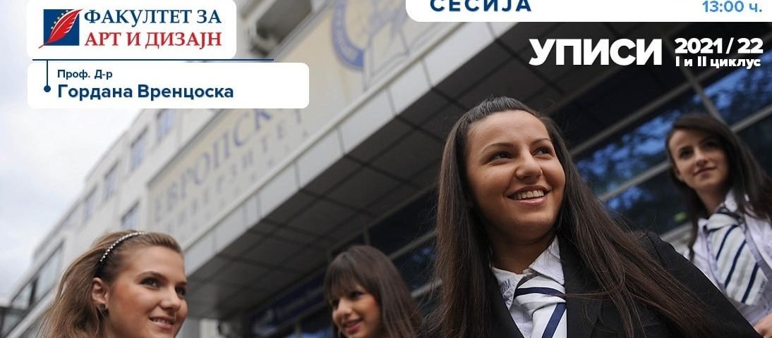 Ве известуваме дека на ден 25.06.2021 (петок) со почеток во 13:00 часот ќе се одржи информативна online сесија на која можете да добиете одговори во врска со сите прашања кои се однесуваат на уписот и студирањето на I и II циклус студии на Факултетот за арт и дизајн. На вашите прашања ќе одговара проф. д-р Гордана Вренцоска, Декан на Факултетот за арт и дизајн.