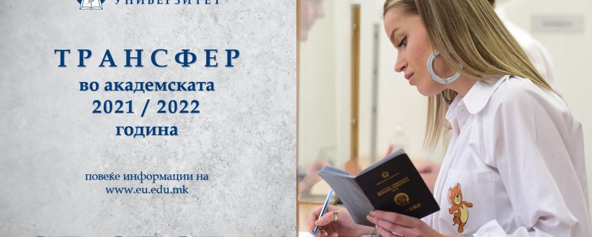 Рокот за доставување на потребната документација, за трансфер на домашни и странски студенти на прв и втор циклус студии од друга високообразовна институција на ЕУ Скопје, за академската 2021/2022 година, може да се врши најдоцна до 15.02.2022 година.
