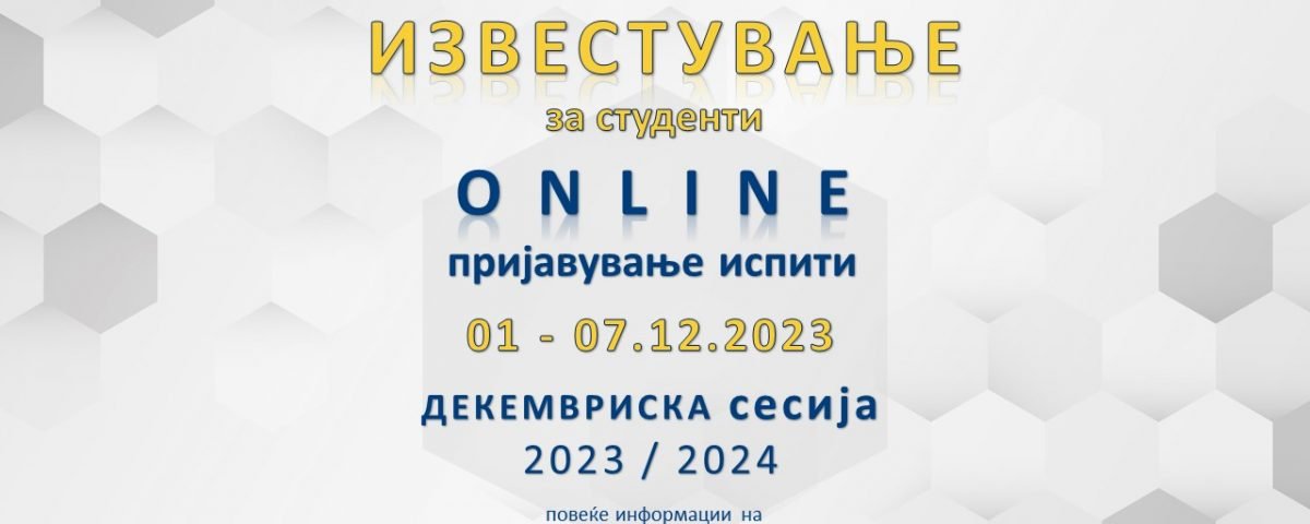 Пријавувањето на испитите од ноемврискиот испитен рок ќе се врши on-line во периодот од 01.12 до 07.12.2023 година.