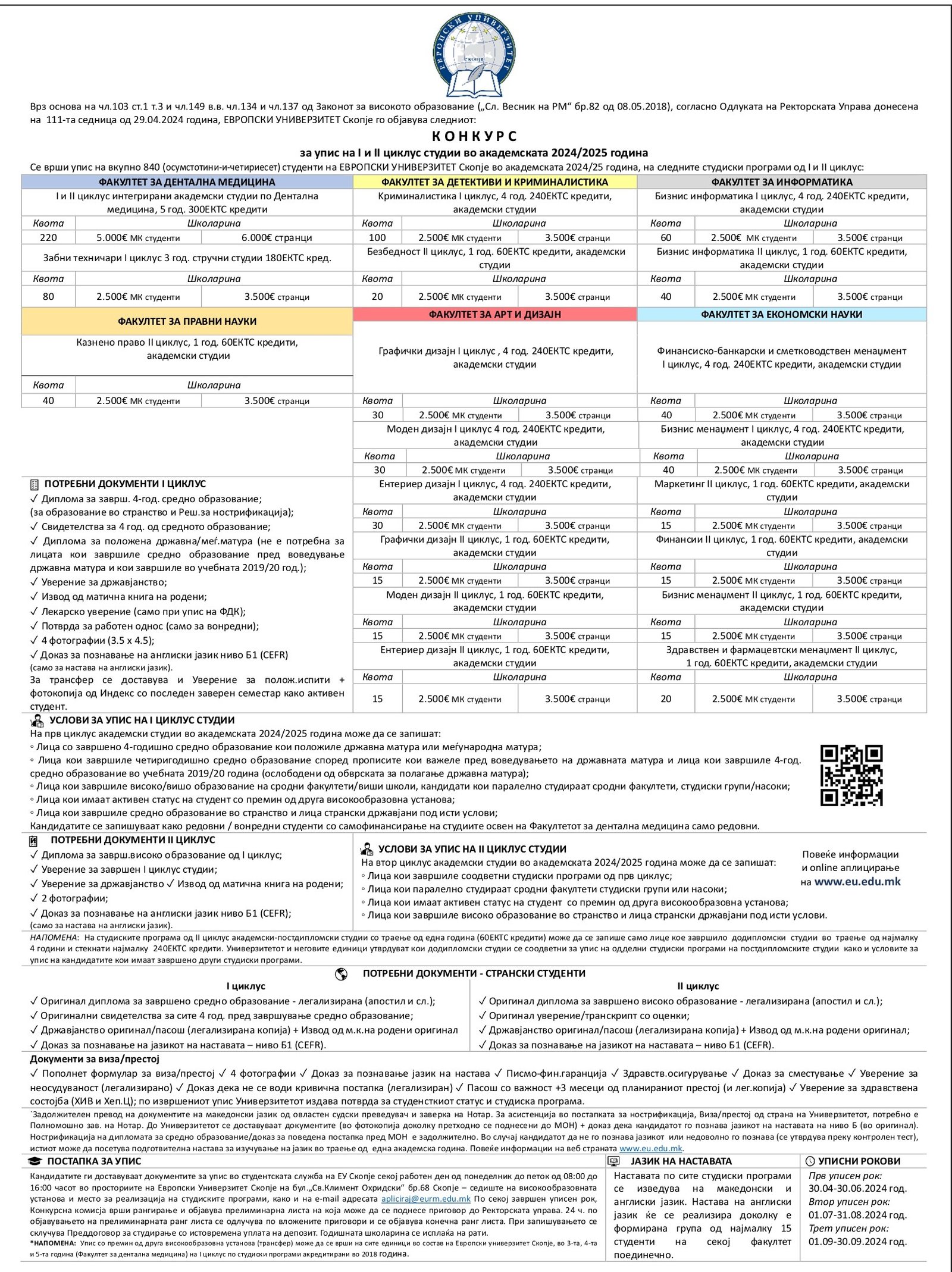 *документите што ќе ги поднесете електронски, комплетно ги доставувате до Студентската служба заедно со сите останати пропишани документи согласно Конкурсот, во оригинал, најдоцна до 30.09.2024