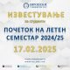 ИЗВЕСТУВАЊЕ ЗА СТУДЕНТИ – ПОЧЕТОК НА ЛЕТЕН СЕМЕСТАР 2024/2025