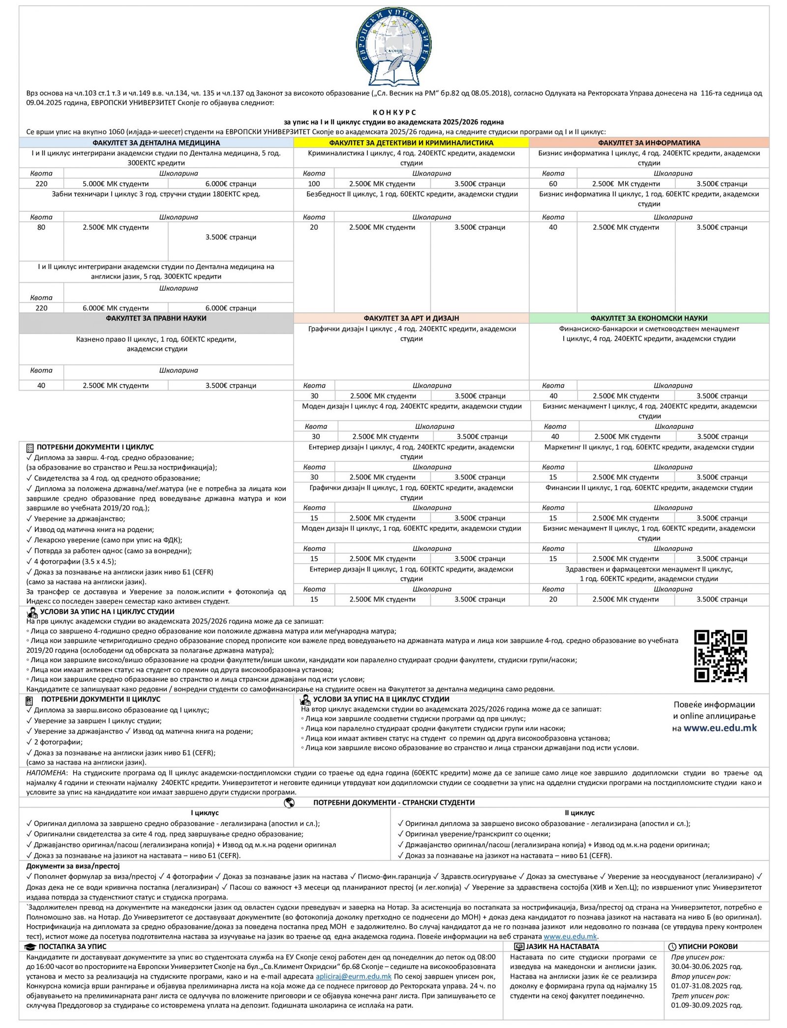 *документите што ќе ги поднесете електронски, комплетно ги доставувате до Студентската служба заедно со сите останати пропишани документи согласно Конкурсот, во оригинал, најдоцна до 30.09.2025