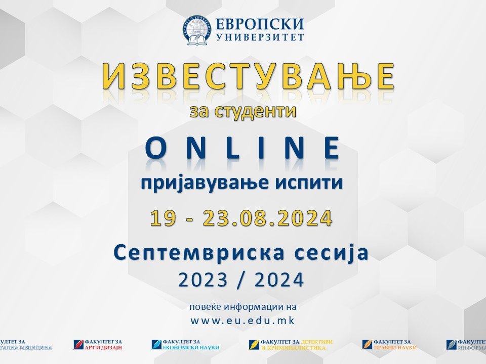 ONLINE ПРИЈАВУВАЊЕ ИСПИТИ – СЕПТЕМВРИСКА ИСПИТНА СЕСИЈА 2023/24