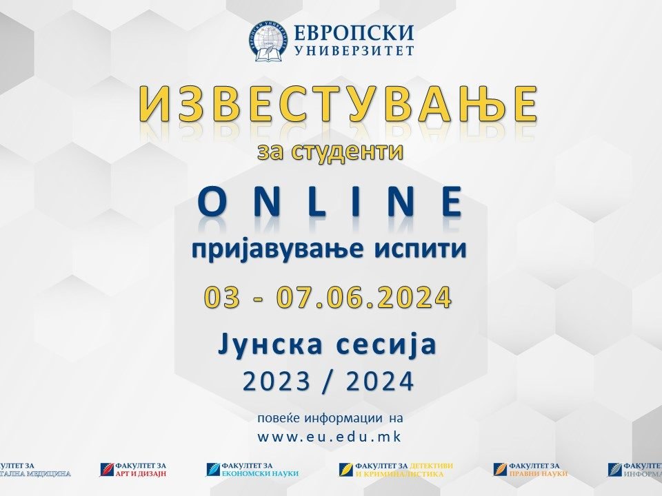 ONLINE ПРИЈАВУВАЊЕ ИСПИТИ – ЈУНСКА ИСПИТНА СЕСИЈА 2023/24
