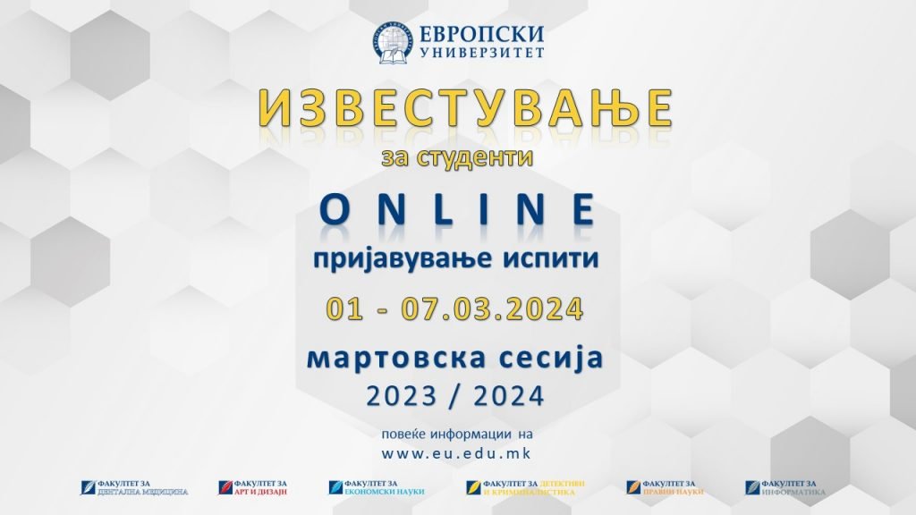 ONLINE ПРИЈАВУВАЊЕ ИСПИТИ МАРТОВСКА ИСПИТНА СЕСИЈА 2023/2024