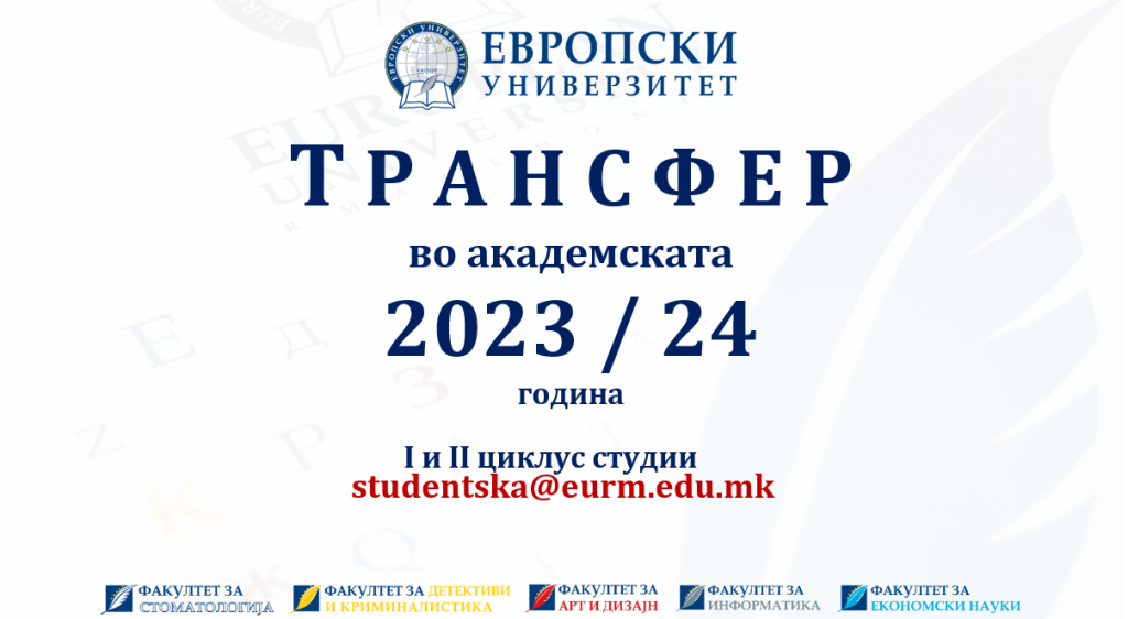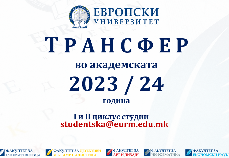 Почитувани студенти, Доколку сте заинтересирани за трансфер од друга високообразовна установа – искористете ја можноста да се запишете до второто затворање на матичната книга (најдоцна до […]