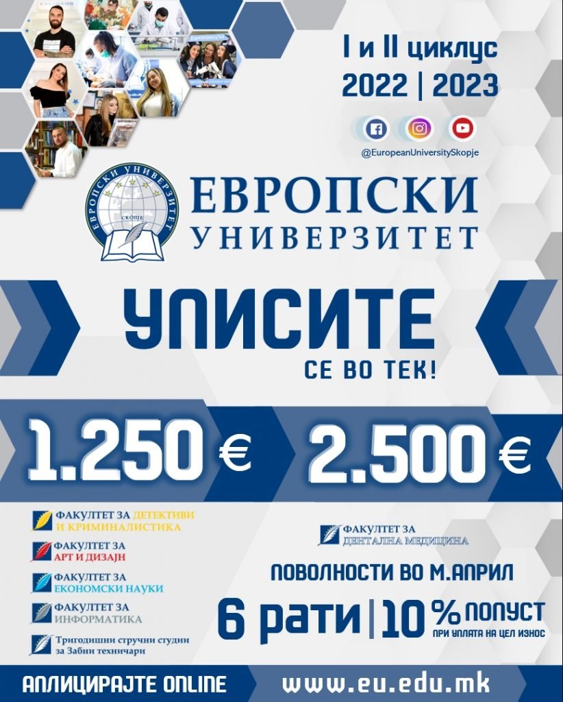 Почитувани идни студенти, Уписите за академската 2022/2023 година се во тек. Оваа година, редовните цени на годишната школарина се повторно намалени и дополнително ви се овозможени […]