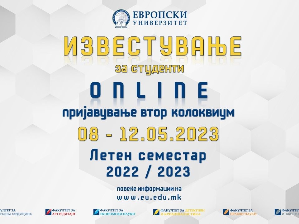 ON-LINE ПРИЈАВУВАЊЕ ВТОР КОЛОКВИУМ – ЛЕТЕН СЕМЕСТАР 2022/23