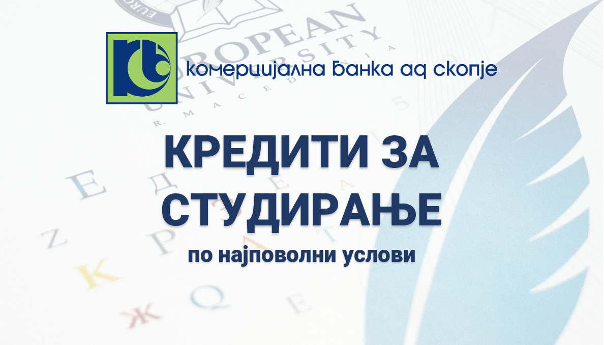 Почитувани студенти, во соработка со Комерцијална Банка АД Скопје, ви нудиме можност за добивање на кредит кој би го искористиле за финансирање на Вашите студии. Условите […]