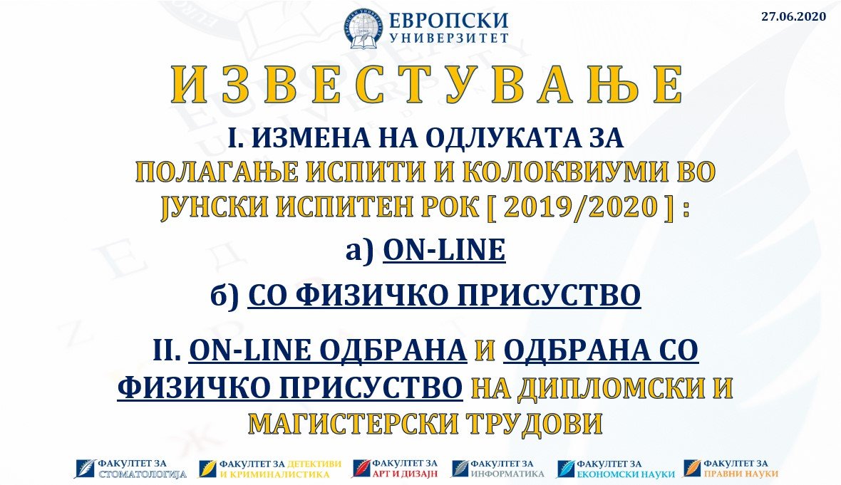Почитувани студенти, Ве известуваме дека согласно Уредбата со законска сила за дополнување на уредбата со законска сила за примена на законот за високото образование за време […]
