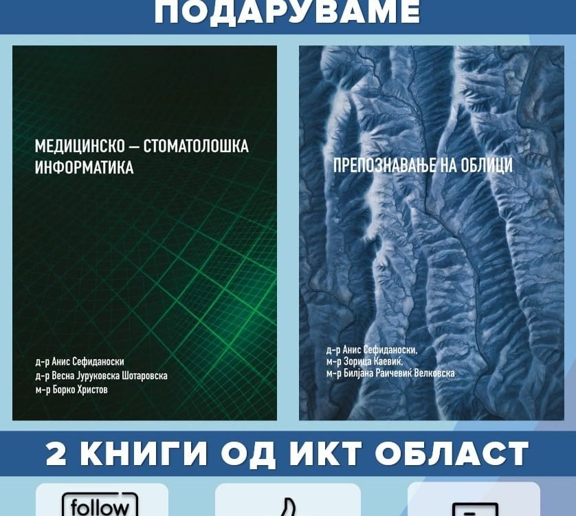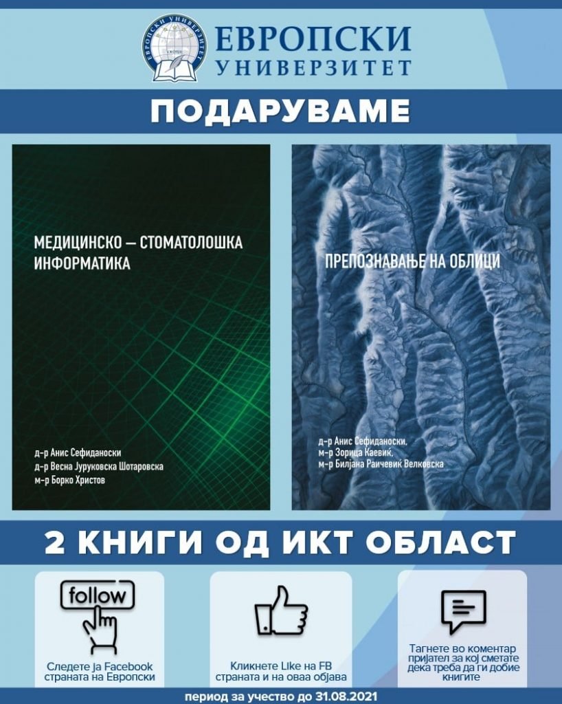 Почитувани, ЕВРОПСКИ УНИВЕРЗИТЕТ подарува 2 книги од областа на информатичко-компјутерските технологии, и тоа: 1. „ПРЕПОЗНАВАЊЕ НА ОБЛИЦИ” од авторите д-р Анис Сефиданис (Декан на Факултетот за […]