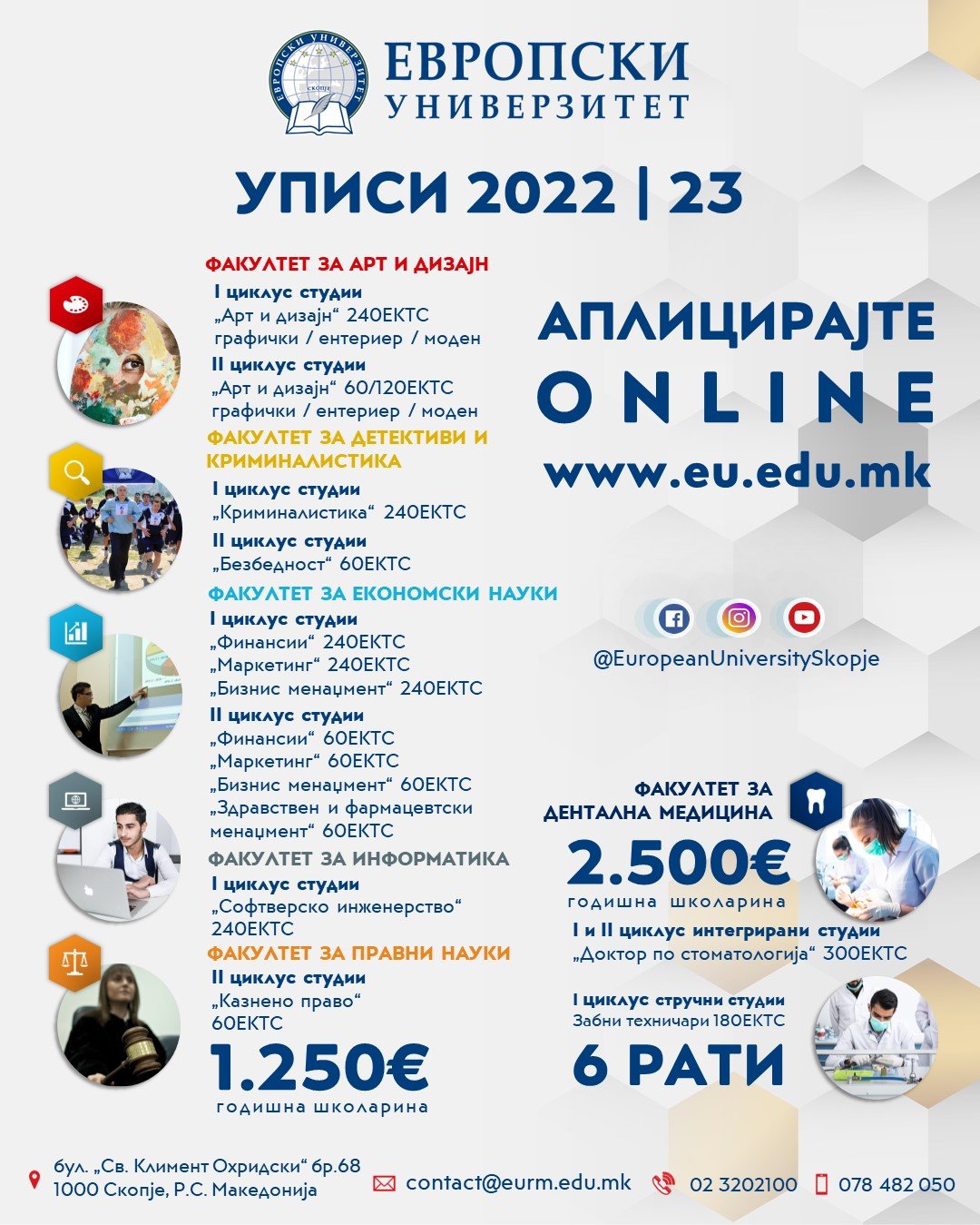 Почитувани идни студенти, Уписите за академската 2022/2023 година се во тек. Оваа година, редовните цени на годишната школарина се повторно намалени и дополнително ви се овозможени […]