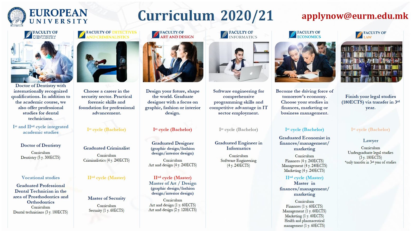As of April 16, the enrollment in the first and second cycle studies (Bachelor & Master) at the faculties within the European University, for the upcoming academic year 2020/21, officially begins.