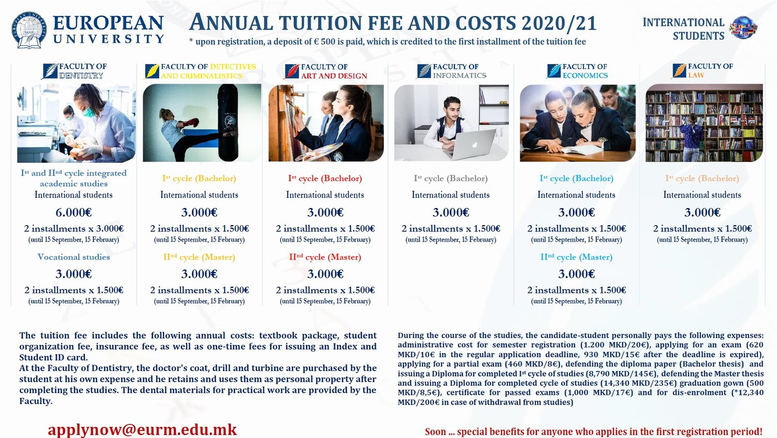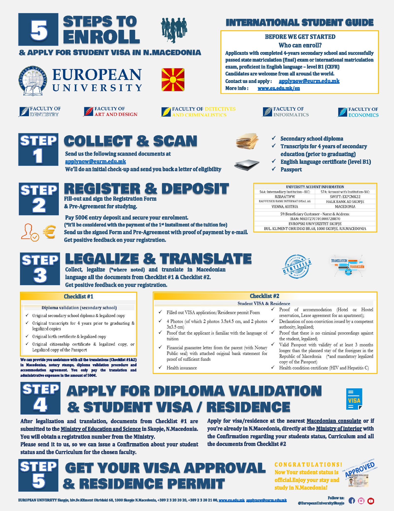 For up-to-date info, regularly follow our posts on social networks Facebook and Instagram (@EuropeanUniversitySkopje).