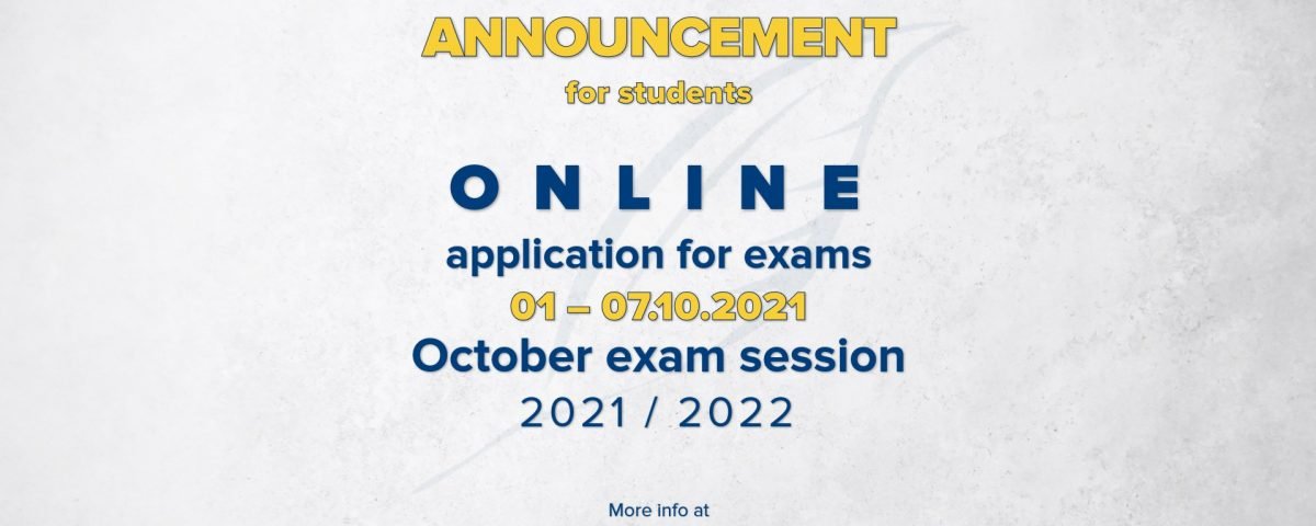 Please be informed that the exam registration for the October exam session 2021/2022 will be done online starting from October 1st to October 7th 2021.