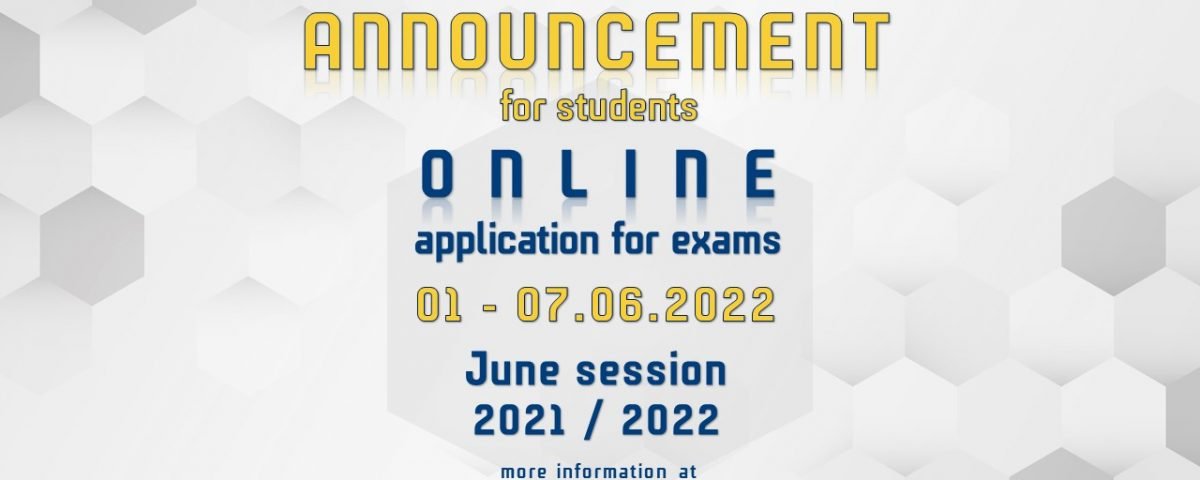 Please be informed that the exam registration for the June exam session 2021/2022 will be done online starting from June 1st to June 7th 2022.