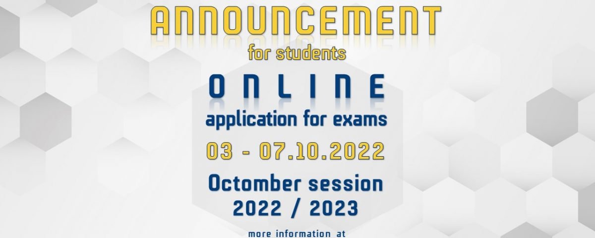 Please be informed that the exam registration for the October exam session 2022/2023 will be done online starting from October 3rd to October 7th 2022.