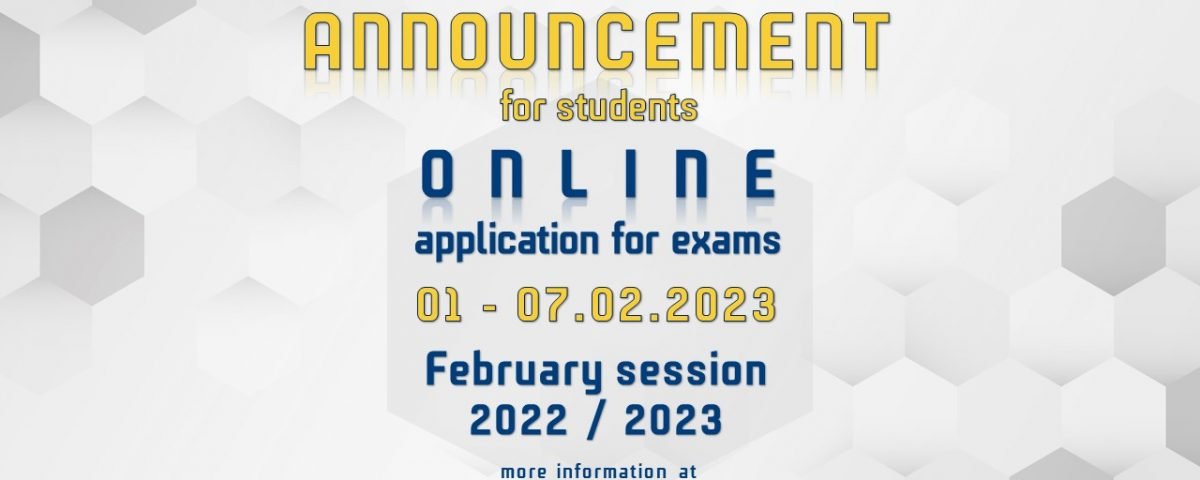 Please be informed that the exam registration for the February exam session 2022/2023 will be done online starting from February 1st to February 7th 2023.