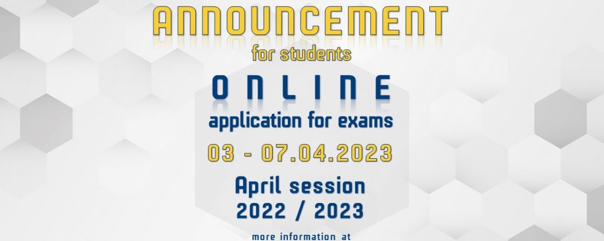 Please be informed that the exam registration for the April exam session 2022/2023 will be done online starting from April 3rd to April 7th 2023.