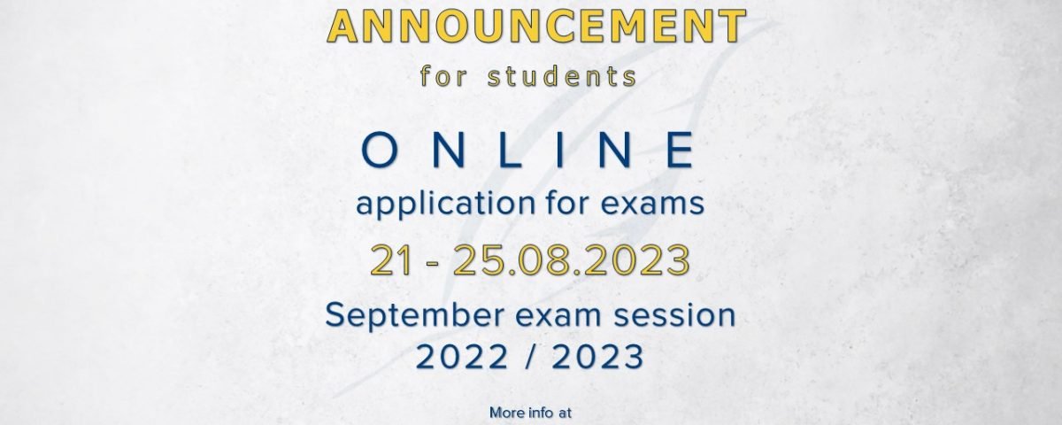 Please be informed that the exam registration for the September exam session 2022/2023 will be done online starting from August 21st to August 25th 2023.