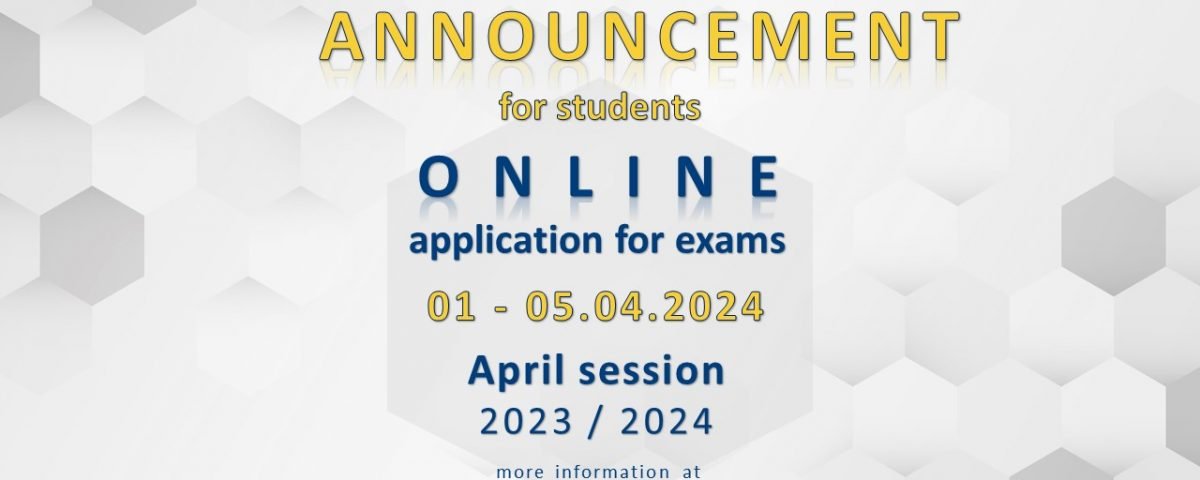 Please be informed that the exam registration for the April exam session 2023/2024 will be done online starting from April 1rd to April 5th 2024.