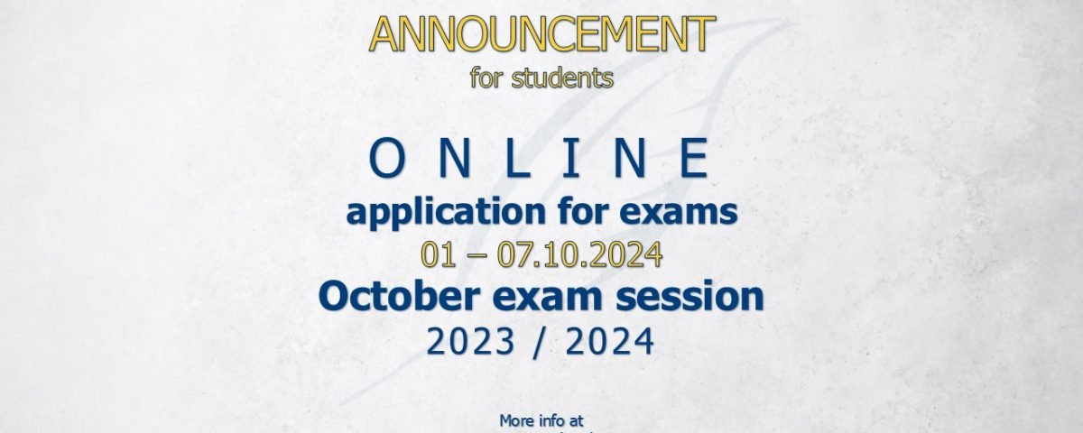 Please be informed that the exam registration for the October exam session 2023/2024 will be done online starting from October 1nd to October 07th 2024.