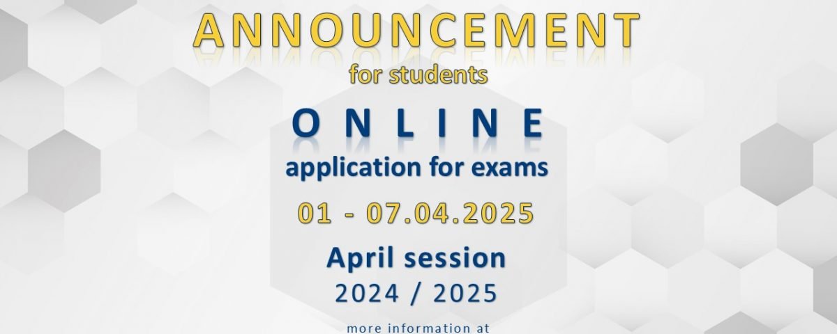 Please be informed that the exam registration for the April exam session 2024/2025 will be done online starting from April 1rd to April 7th 2025.