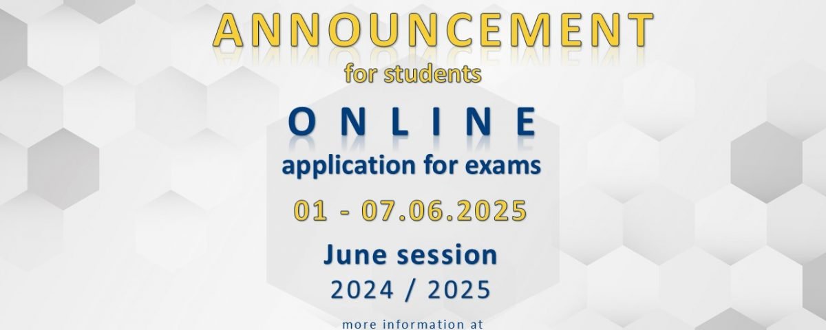 Please be informed that the exam registration for the June exam session 2024/2025 will be done online starting from June 1st to June 7th 2025.