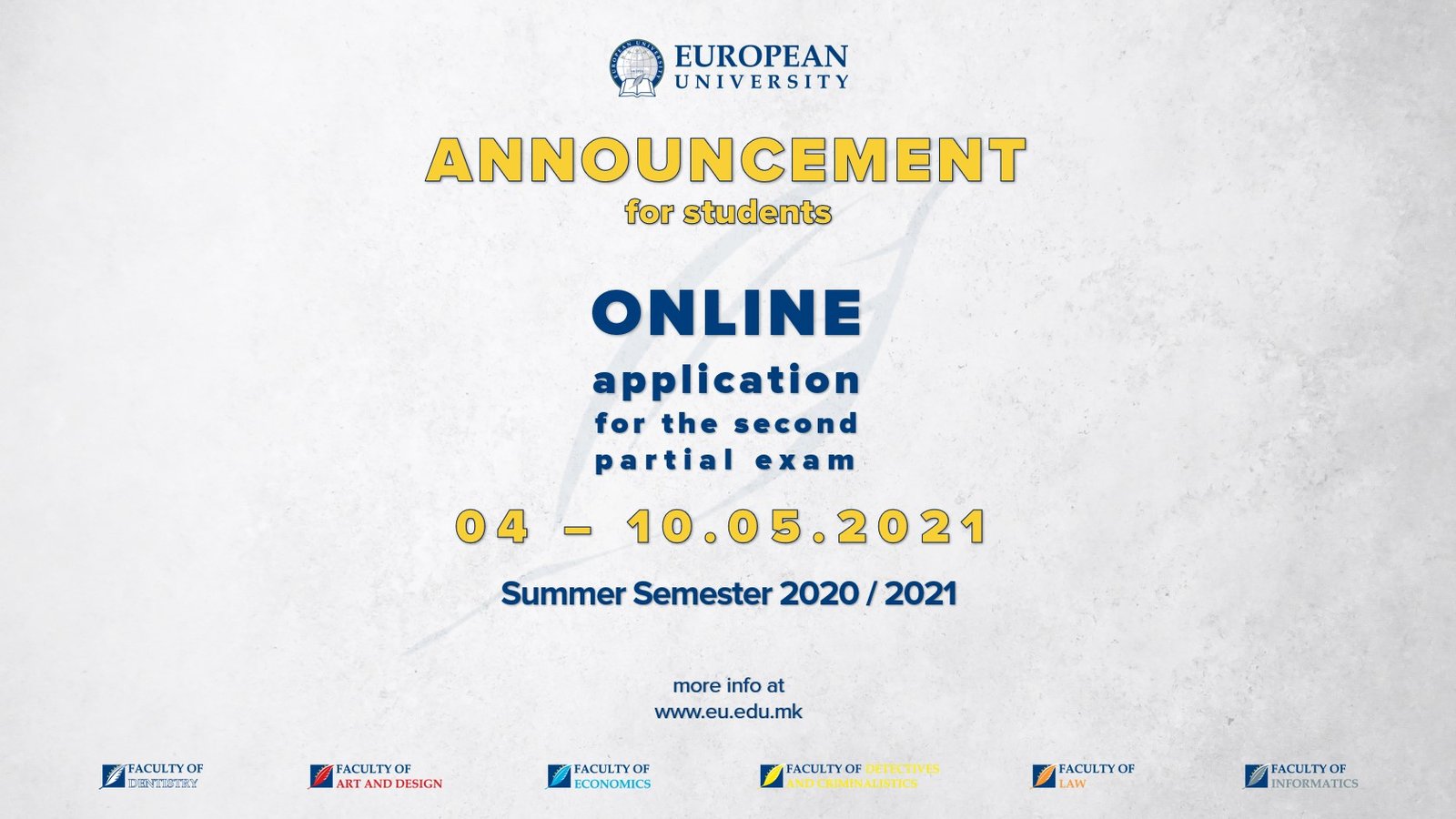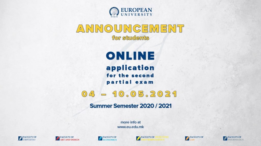 Dear students, Please be informed that exam registration for the upcoming Second Partial Session 2020/2021 will be done online starting from May 04th to May 10th […]