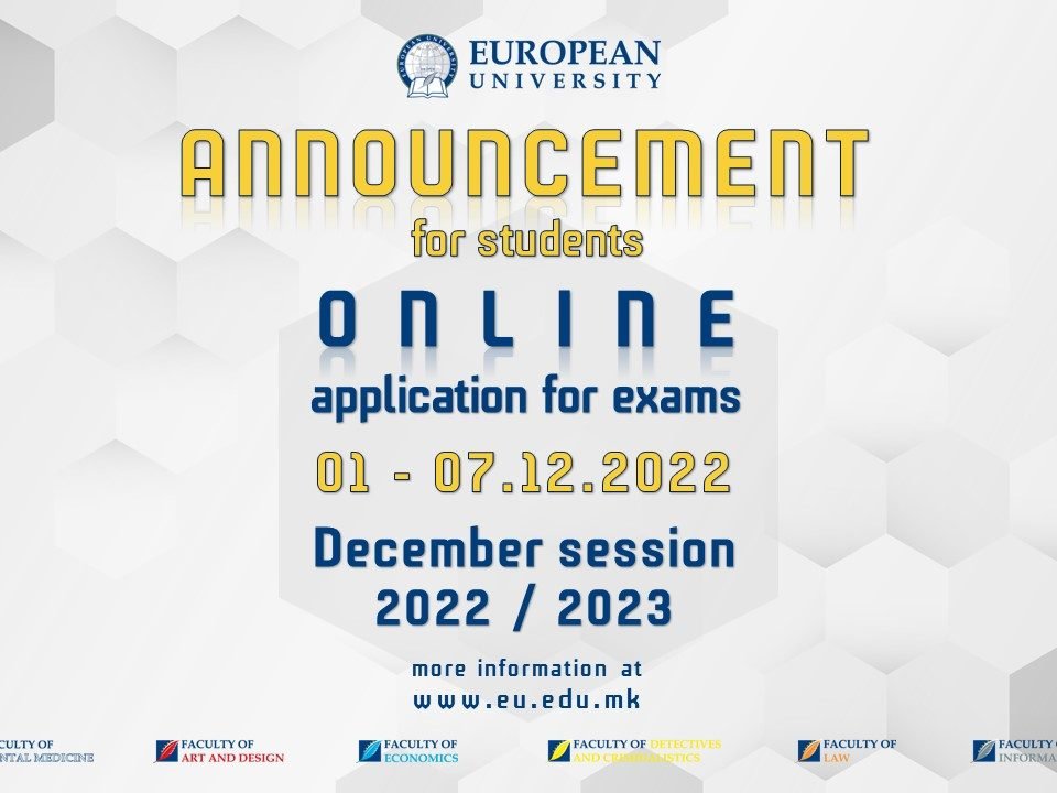 Dear students, Please be informed that the exam registration for the December exam session 2022/2023 will be done online starting from December 1st to December 7th 2022. […]