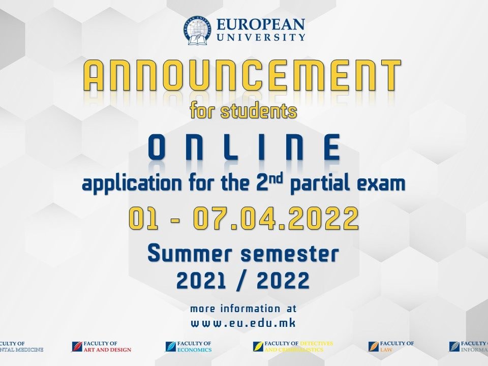 Dear students, Please be informed that the registration for the upcoming Second Partial Exam Session 2021/2022 (summer semester) will be done online starting from May 09th […]