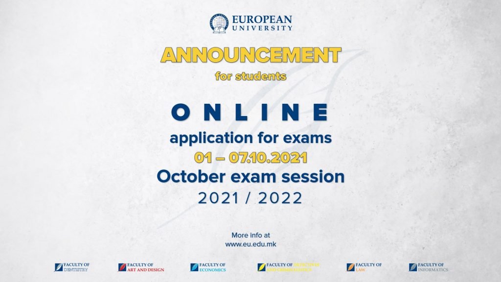 Dear students, By decision of the Rector’s Board of the EUROPEAN UNIVERSITY Skopje, we inform you that: A combined method is introduced – online / physical […]