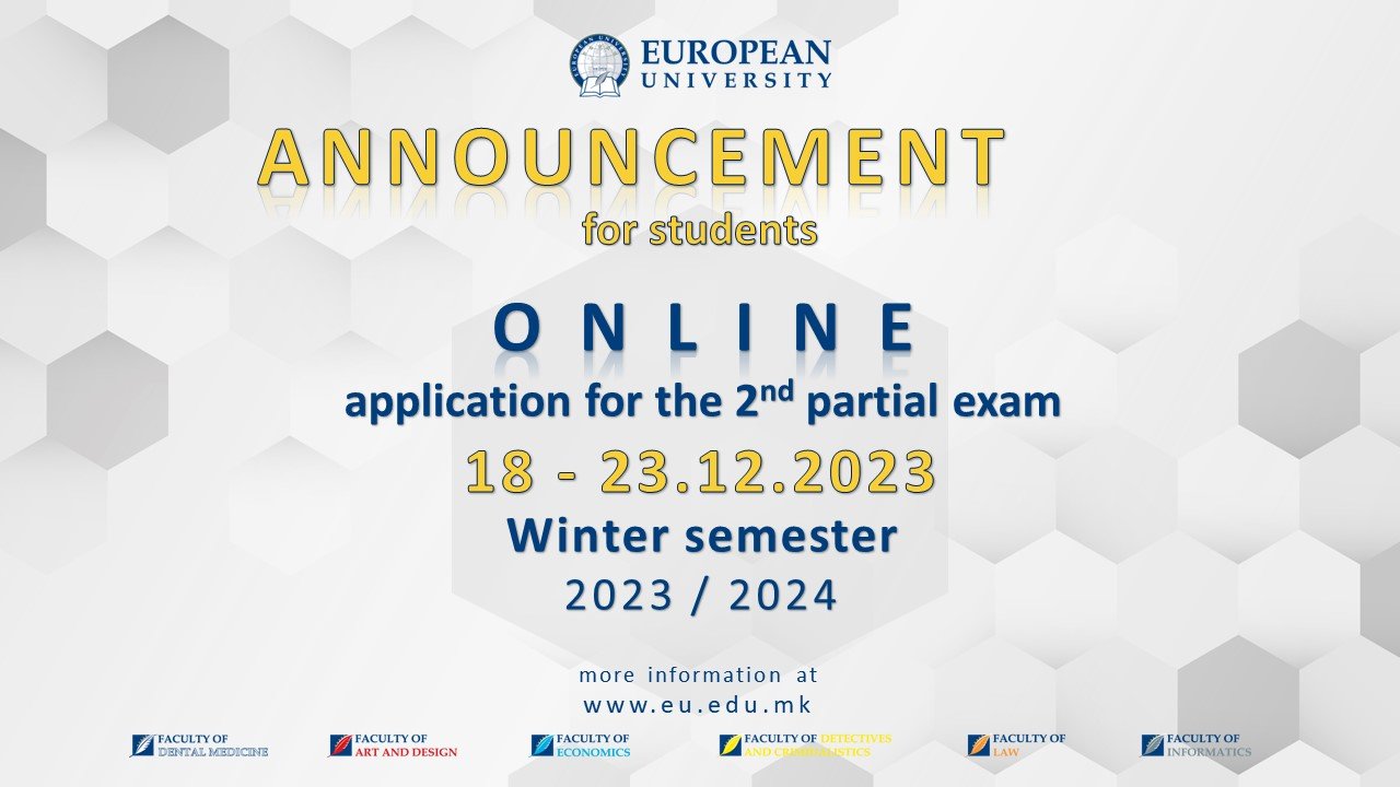 Please be informed that the exam registration for the March exam session 2023/2024 will be done online starting from March 1st to March 7th 2024. As […]