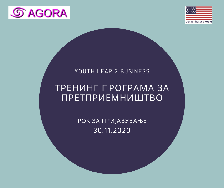 Tренинг програма за претприемништво АГОРА – Центар за промовирање на граѓански вредности во рамките на проектот „Младински скок во бизнисот“ поддржан од Американската Амбасада во Скопје,