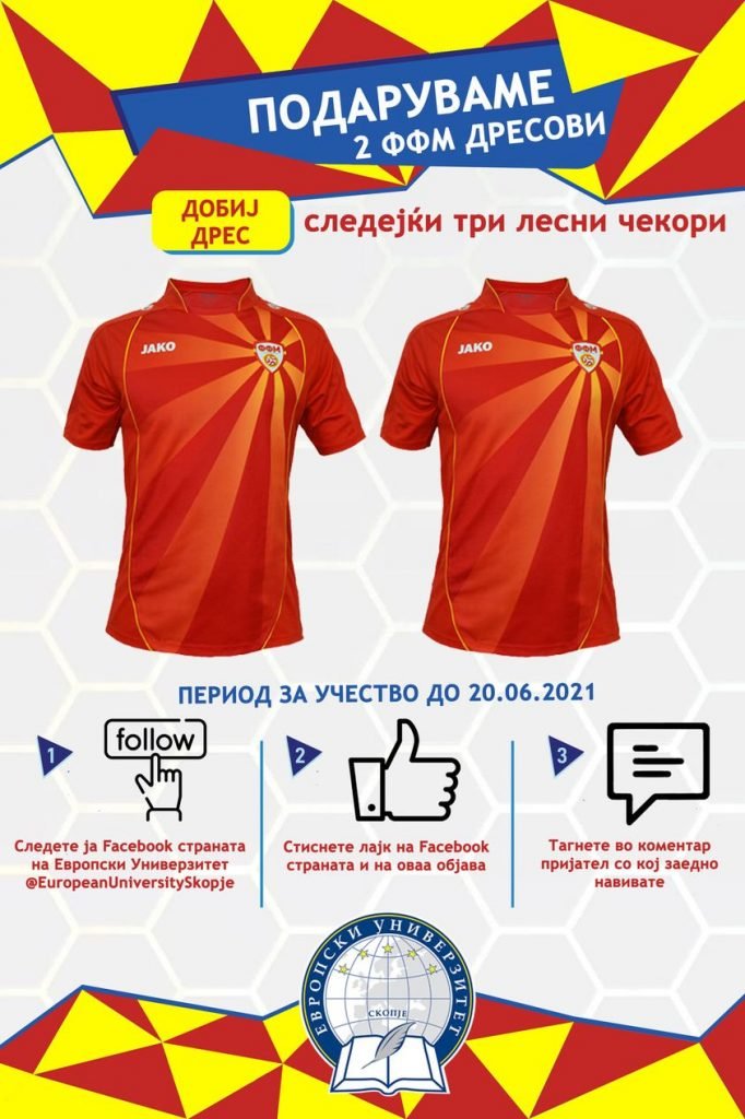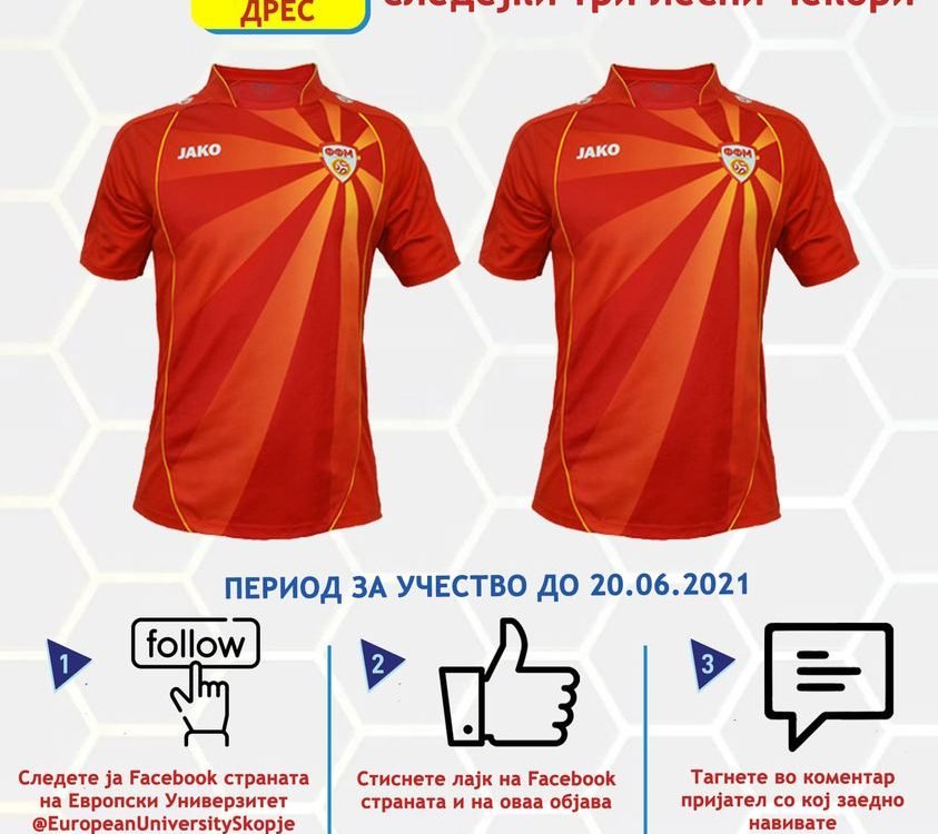 Во знак на подршка на нашите фудбалери на Европското првенство, Европски Универзитет одлучи да подари два ФФМ дресови на двајца среќни навивачи. Учеството е согласно упатствата […]